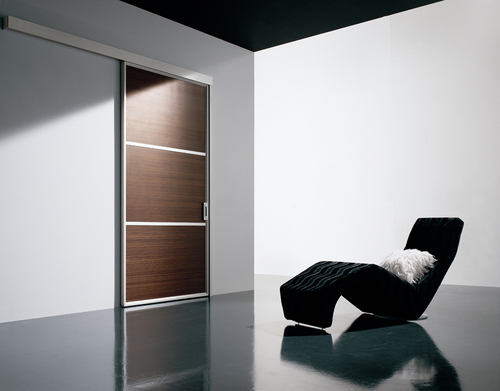 • конструкции современной стилистики, выполненные из массива ценных пород либо обшитые срезом, для которых металлические элементы являются украшением. В составе алюминиево-деревянных межкомнатных дверей направлений хай-тек и минимализм находятся молдинги или гладкие вставки, контрастирующие с общей поверхностью.