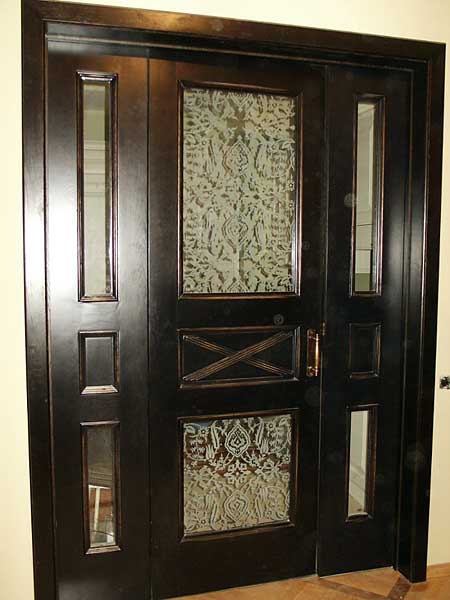 полотна в глухом исполнении, уместные в спальнях, санузлах, кабинетах, а также оснащённые матовыми стёклами разных габаритов и форм;