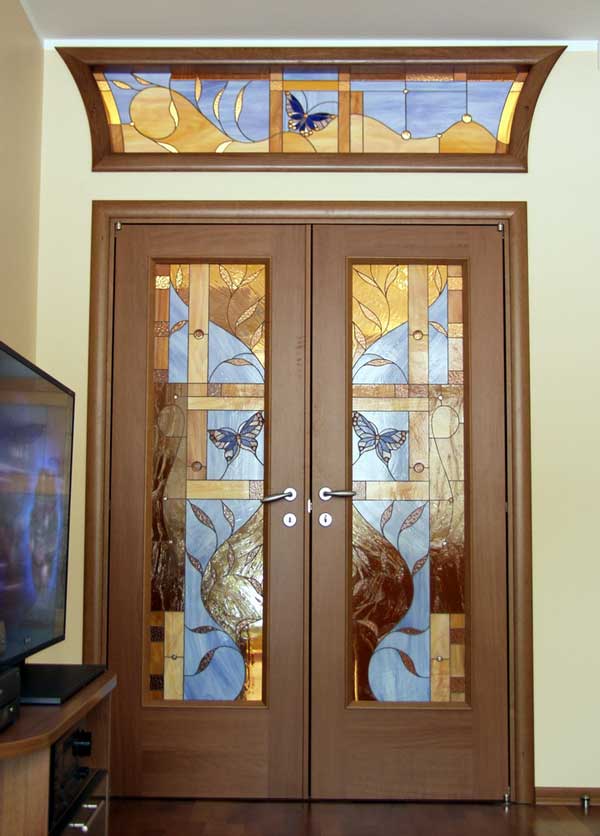 глухая модель либо оборудованная стеклянной вставкой. Первый вариант уместен в помещениях, нуждающихся в создании максимально приватной камерной обстановки, - спальнях, кабинетах, ванных комнатах. Второй же традиционно выбирают для гостиных и кухонь;