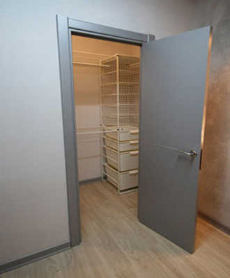 выступающий как дополнительный источник света в прихожей, коридора, гардеробной - белые двери из шпона излучают мягкое свечение, позволяющее эксплуатировать их в комнатах без окон;