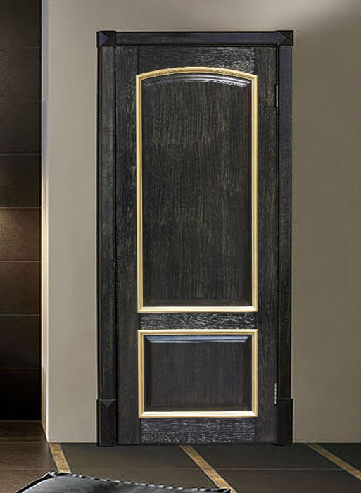 - в шикарный ансамбль гостиной или зала, оформленный в духе классики. Створка богатого насыщенного оттенка - отличный способ завершить «дворцовое» убранство. Обрабатывая полотна золотой или серебряной патиной, дополняя их витражными элементами, увенчивая объёмными карнизами, производители получают роскошные конструкции. Так, выбирая выразительные чёрные межкомнатные двери в дом по лучшей цене, стоит обратить внимание на модели серии Leon от Academy;