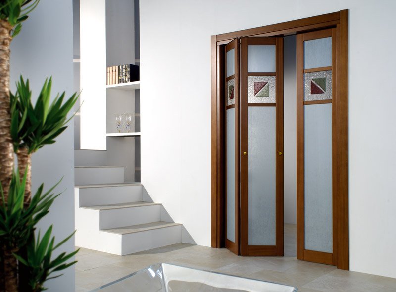 В настоящее время можно купить деревянную дверь-книжку с любыми техническими и эстетическими особенностями. Она изготавливается из массива нетяжёлых сортов древесины или заключает в составе элементы натуральных и искусственных типов сырья. Комбинированные варианты в силу небольшого веса и высокой практичности пользуются особым спросом. Их выпускают:
