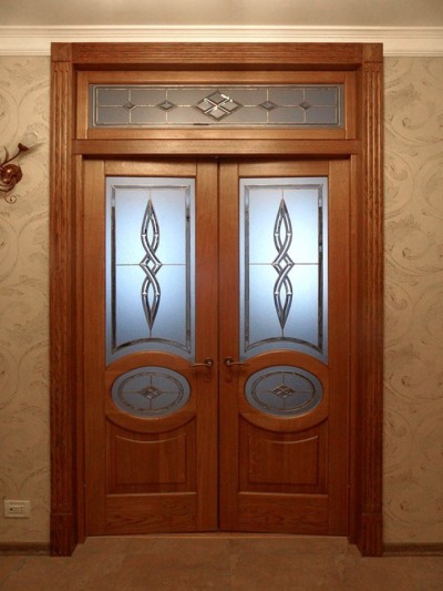 Изучая фото и цены деревянных дверей со стеклом, потенциальный покупатель познакомится с великим множеством элегантных и незаурядных работ. Внимания заслуживают конструкции: