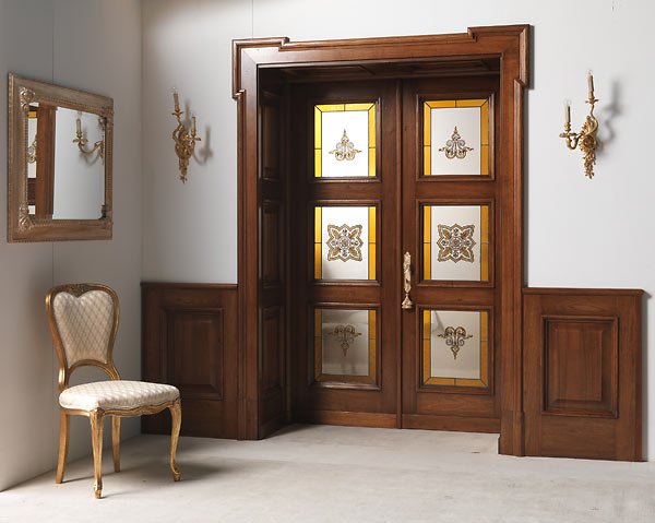- конфигурация. В интерьерах исторических особняков и загородных домов нередко находят своё место арочные полотна. Изготавливаемые на заказ с применением особой технологии и фурнитуры, скруглённые двупольные деревянные двери по цене превосходят прямоугольных собратьев;