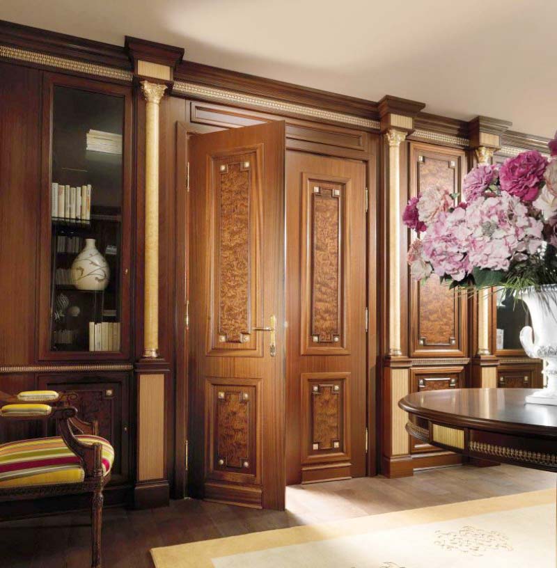 Масштабный проём - эффектное начало и финальный аккорд обширного пространства. С его помощью легко придать гармоничное звучание торжественному залу, гостиной, библиотеке, столовой в загородном доме. Сохранить индивидуальную архитектуру помещения и подчеркнуть его уникальный стиль помогут деревянные двупольные двери. Установленные в крупный проход, они украсят его и преобразят интерьер за счёт способности: