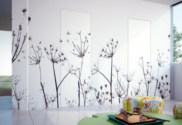 Одним из эффективнейших методов реализации потайной системы открывания является дверь-невидимка под обои. Преображение конструкции подобным образом - дело малозатратное, оперативное и не требующее чрезмерных усилий. Полотно, профессионально закреплённое вровень со стеной, легко спрятать за её покрытием, обеспечив полное совпадение узора. Единственное, что в результате останется на виду - небольшой идеально ровный зазор по периметру створки, но и его можно замаскировать, выбрав отделку с рисунком вертикальных линий.