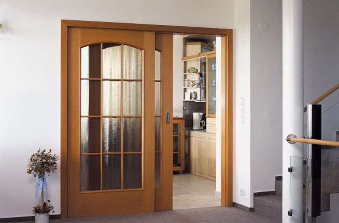 с полотнами щитового и филёнчатого устройства, глухого и остеклённого исполнения;