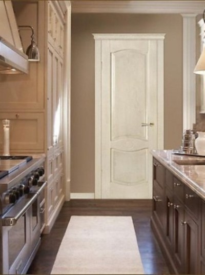 • ампиром или барокко. Для «дворцовых» антуражей выбирают створки, декорированные золотом, резьбой, витражными вставками. На бежево-коричневом или золотистом фоне превосходно смотрится тёмная патина;