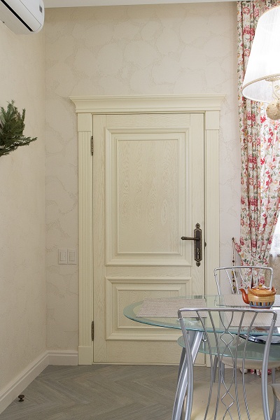 • в уютный интерьер спальни, где особенно уместна дверь из натурального шпона ясеня в умиротворяющем оттенке ванили;