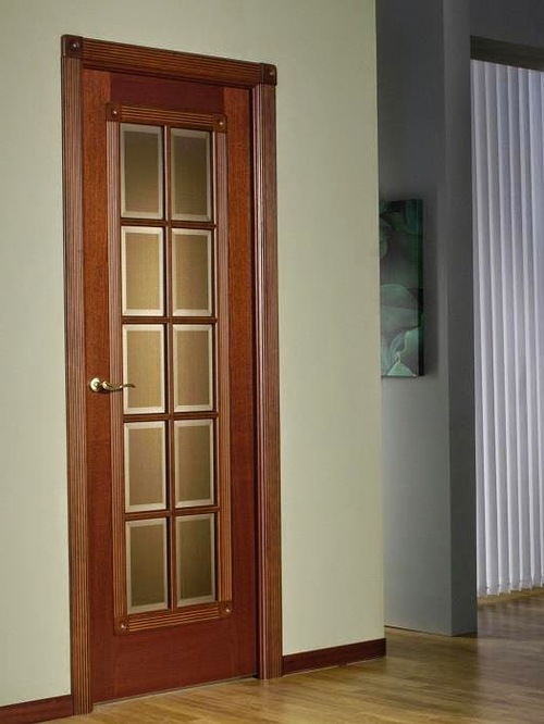 • яркие створки превосходно справляются с ролью декоративных акцентов в «наряде» комнат. Компанию им составляют спокойные и нежные расцветки, заключающие золотистые, оранжевые, сиреневые, бежевые нотки. Отличная идея - купить межкомнатную дверь из темного шпона вишни для помещения, в облике которого присутствуют зелёные элементы. Такой ансамбль смотрится весьма естественно.