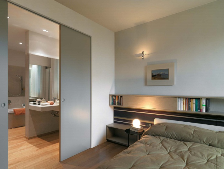 - оборудованы металлическими коробками. Благодаря лёгкой и жёсткой раме глухая алюминиевая дверь без труда крепится в проёме и вступает в гармоничную связь со стеной. Короб выдерживает любые нагрузки, что позволяет объединять его с очень тяжёлыми полотнами из твердолиственного массива. Подобное обрамление нередко поставляется в комплекте со скрытыми системами. Обладающее небольшой толщиной, оно прячется за отделкой стен;