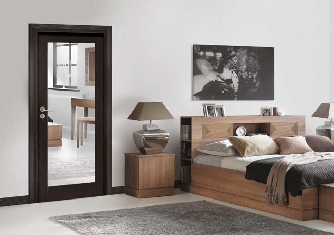 - зазеркалье, которое продублирует пространство, визуально продолжая его. В отличие от створок с любым другим декором, глухие двери с зеркалом не ставят точку в интерьере, а напротив, открывают перспективу, делают помещение глубже. Даже на очень малых площадях они «звучат» выгодно и гармонично;