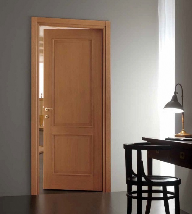 • механическую безопасность. От остеклённых конструкций нередко отказываются родители маленьких детей. Глухие гладкие двери из шпона дуба не станут причиной серьёзной травмы у ребёнка, например, въехавшего в них на трёхколёсном велосипеде. С другой стороны, современные производители уделяют немало внимания и безопасности стекла, предлагая вставки, не создающие острых осколков при разрушении.