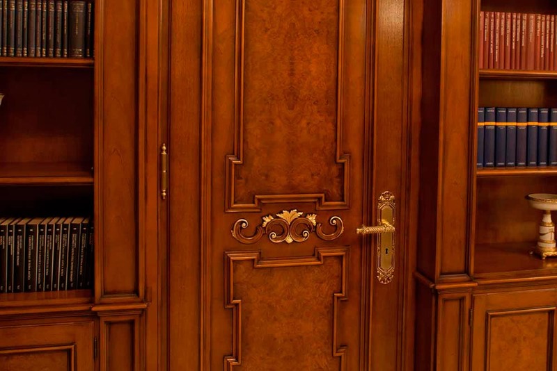 Элементы оснастки способны значительно повысить изначальную цену модели, особенно когда речь идёт об авторской фурнитуре, резных погонажных элементах или дорогих витражах. Чтобы глянцевая дверь обошлась недорого, но в то же время хорошо выглядела и обладала достойными эксплуатационными свойствами, её оборудуют: