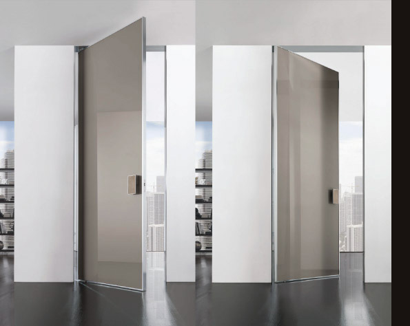 • большой высоты - до 3 м. Свежим веяниям моды соответствуют модели, устанавливаемые в потолок. Вероятность, что готовая нестандартная дверь данной разновидности будет включена в запасы крупного поставщика, довольна велика.
