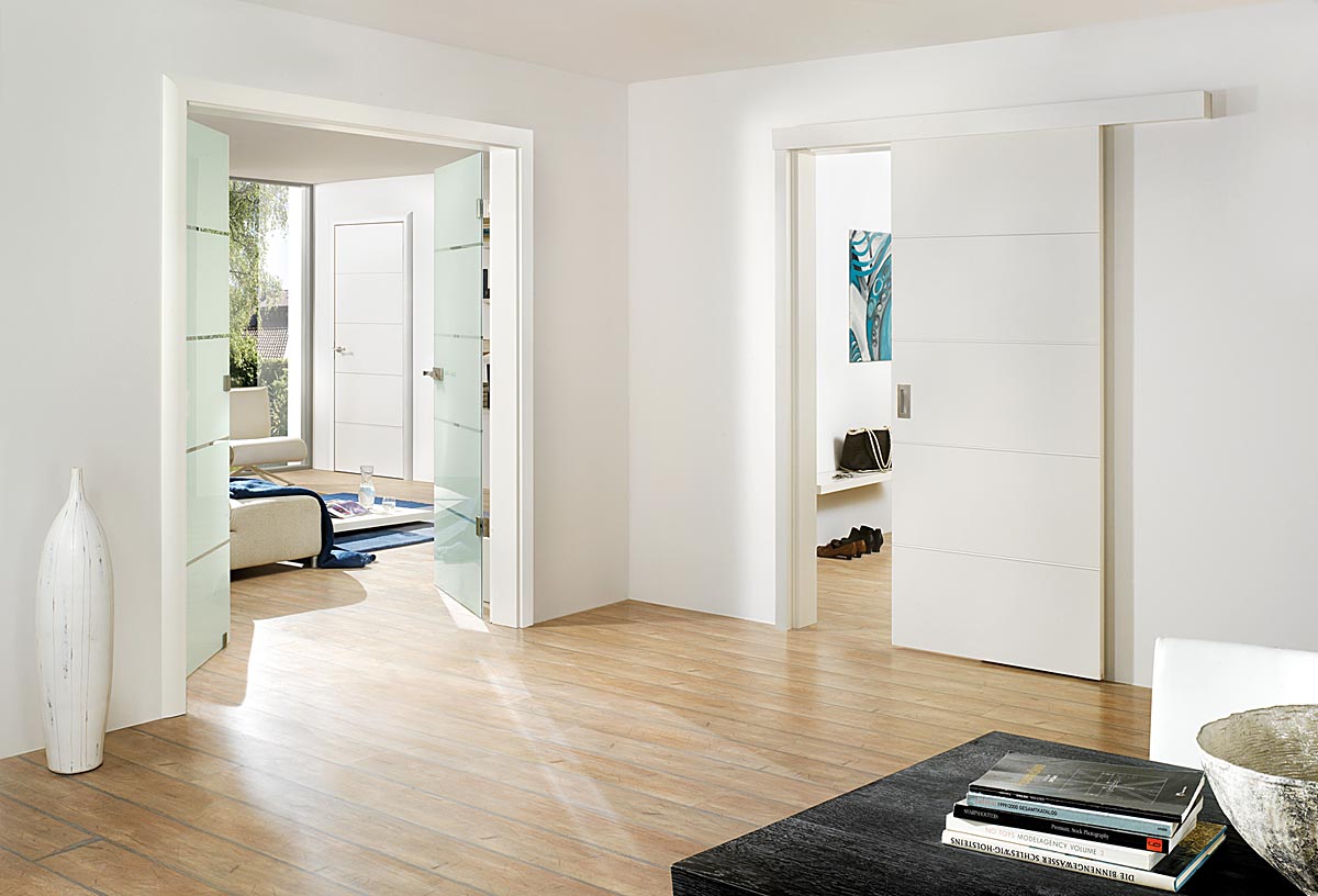 • при сдвижении скользящие вдоль стены либо встроенные в нишу посредством специального металлического пенала. Готовые раздвижные межкомнатные двери кассетного типа - лучший способ сэкономить максимум свободной площади в небольшом помещении;