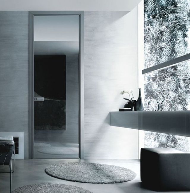 - объединяются с петлями или откатной механикой. В частности, среди запасов крупных фирм реально встретить перегородки из стекла и дерева или алюминия, позволяющие не только закрывать проёмы, но и делить пространство.