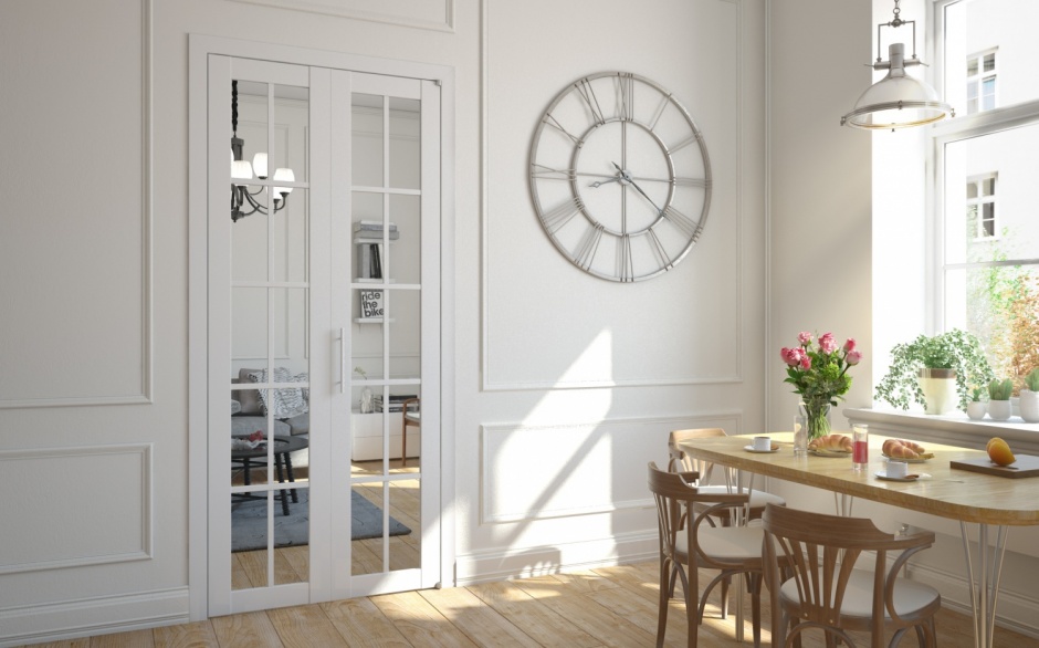 Есть и универсальные створки, которые легко впишутся куда угодно. К таковым относят стеклянные складывающиеся изделия, обрамлённые профилем из древесины или ламинированного алюминия. Их воздушность, утончённость, способность излучать свет - пропуск в любые интерьеры.