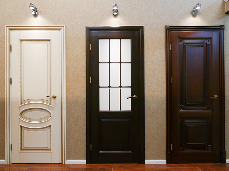 • по типу сборки - гладкие, в виде щитов, предполагающих наличие внутренней обвязки, или оборудованные филёнками;