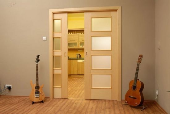 Основной особенностью комбинированной раздвижной двери является её оригинальный внешний вид. Чтобы получить эффектные интерьерные решения, производители используют различные типы сырья, а также их союзы. Например, нестандартным обликом и достойными эксплуатационными характеристиками обладают модели:
