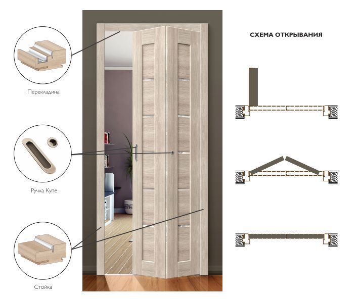 Ламинированная дверь-книжка получила своё название благодаря способности складываться при открывании. Для этого в её структуре предусмотрены: