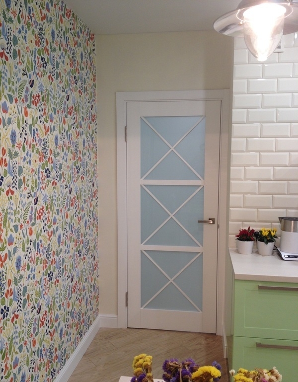 - устойчивость к пару, влаге, жиру, влиянию непостоянных температур, запахам и т. д. Стеклянная матовая дверь на кухню - превосходный вариант в свете того, что мало какое помещение для готовки пищи располагает благоприятными условиями работы. К тому же, за её поверхностью легко ухаживать, она гигиенична и способствует сохранению чистоты и порядка в кухонном пространстве;