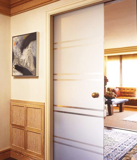 - для перекрытия стандартного межкомнатного проёма можно приобрести распашную модель или остановиться на более компактной откатной системе. Полотна на роликах купейного или встроенного типа не только визуально разгрузят интерьер, но и сберегут часть полезной площади;