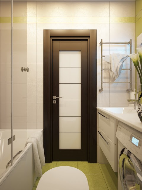3. учитывать архитектурные особенности помещения. Хозяевам типовых квартир часто приходится иметь дело с малогабаритными санузлами, которые граничат с такими же тесными прихожими. В данном случае следует уделить внимание сдвижным дверям для ванной комнаты и туалета - их стоимость несколько выше, но высвободившиеся квадратные метры окупают затраты.