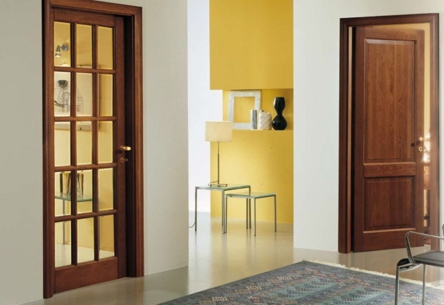 К респектабельной эстетике аристократических особняков обращены двери с английской решёткой. Подчинённые строгим канонам традиционного стиля, они изготавливаются из цельного дерева либо покрываются натуральным шпоном. Центральной деталью их облика является стеклянная вставка, заменяющая верхнюю филёнку либо целиком заполняющая собой обвязку. Светопрозрачный элемент равномерно разделён на прямоугольные участки горизонтальными и вертикальными деревянными рейками, число которых может варьироваться.