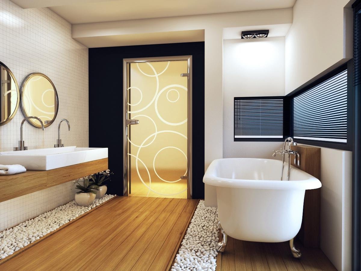 Выбрав стеклянные двери в ванную комнату, можно объединить их в удачном союзе с прочими створками - они обладают универсальной эстетикой и легко интегрируются в любые интерьеры.