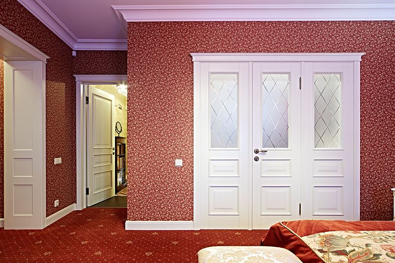• встроенные остеклённые двери, покрытые эмалью, - самые компактные варианты межкомнатных створок;