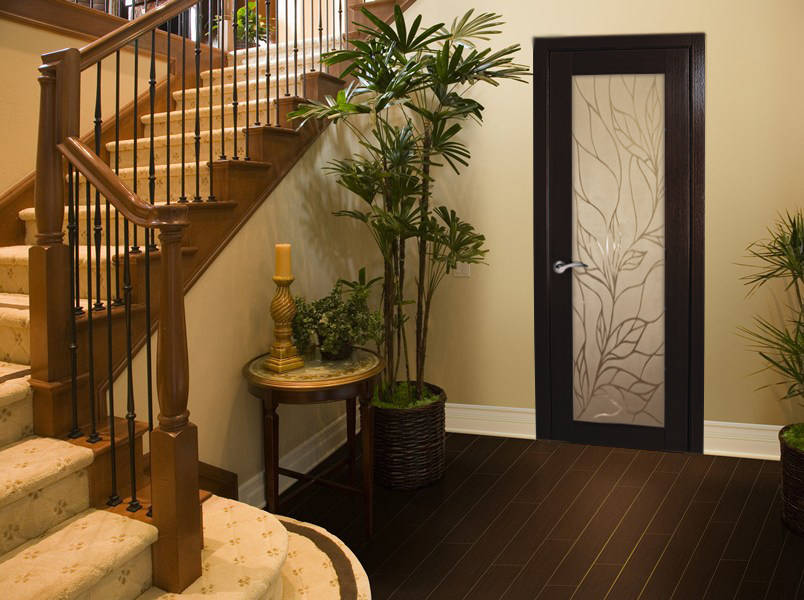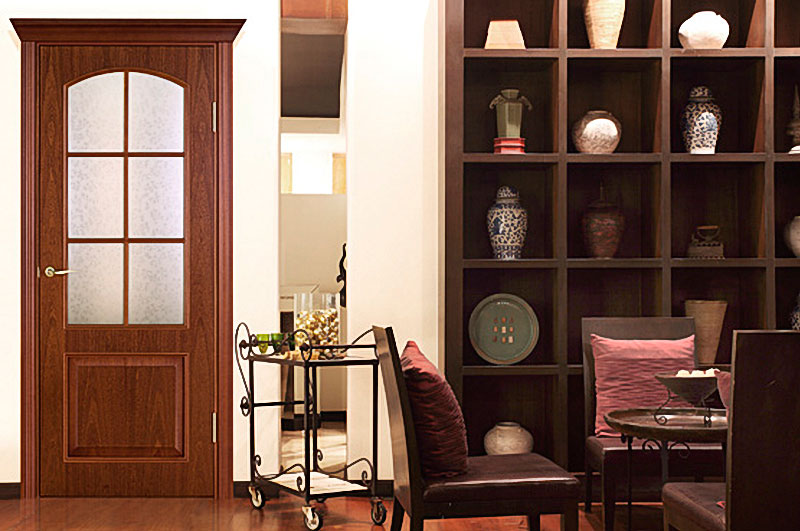 • уместность в комнатах, требовательных к приватности. Вариантов обработки светопрозрачных материалов насчитывается бесконечно много. Некоторые их них рассчитаны именно на то, чтобы скрывать обзор. Межкомнатная остеклённая шпонированная дверь подходит для оформления спальни, ванной, кабинета, не ограничиваясь гостиными и кухнями.