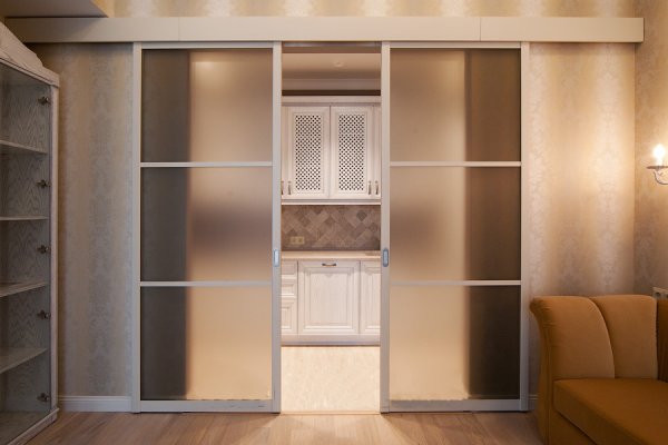 - имеют купейное исполнение или оснащены металлической кассетой для встраивания в стену. Кассетные конструкции стоит рассмотреть, если купить подвесные двери-купе предстоит для помещения, требовательного к тепло- и шумоизоляции;