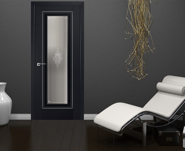 У авторитетных фабрик можно купить распашную дверь с закалённым стеклом, декорированным: