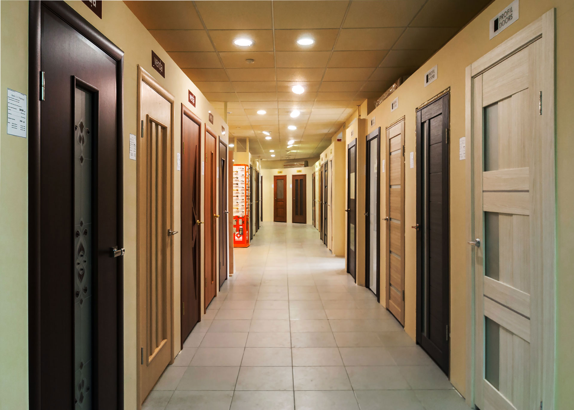 - выставочным образцам. Распродажа готовых межкомнатных дверей из демонстрационных залов происходит каждые два-три месяца. Когда торговый салон получает что-то новенькое, створки, украшавшие витрину, покидают её, уступая место новоприбывшим изделиям. Но продаваться как обычные решения они уже не могут, поскольку побывали в эксплуатации и полностью оснащены фурнитурой. Это красивые и актуальные полотна - в конце концов, не зря их выбрали для исполнения рекламной роли. Поэтому многие клиенты следят за обновлением витрин, стараясь не упустить свой шанс;
