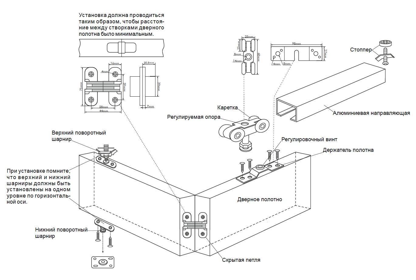 3. петли, посредством которых осуществляется соединение и слаженное функционирование панелей полотна. Другой набор петель обеспечивает связь модели с коробкой;