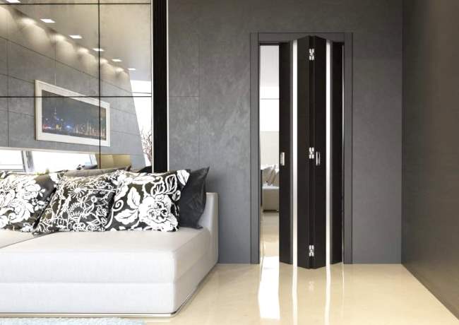 - уникальные декоративные свойства. Модель прекрасно выглядит и меняет восприятие обстановки в лучшую сторону. Его способность скользить, совершать элегантный поворот и складываться, плотно примыкая к стойке коробки - своего рода дополнение к выбранному отделочному материалу и украшающим деталям;