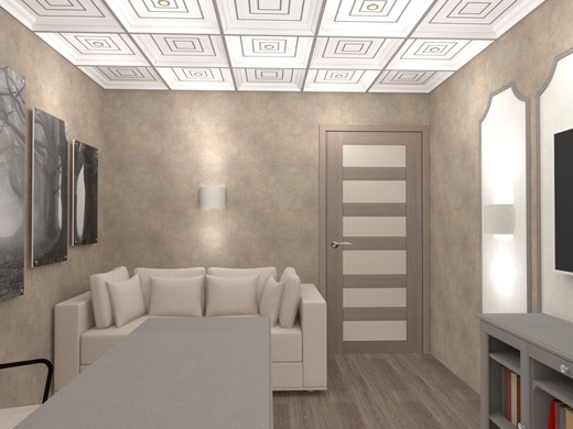 - сопротивляемость влаге - материал не портится под влиянием пара или прямых брызг воды. Установить серо-бежевые двери можно в ванной или кухне. Небольшим пространствам изделие подарит больше света и воздуха.