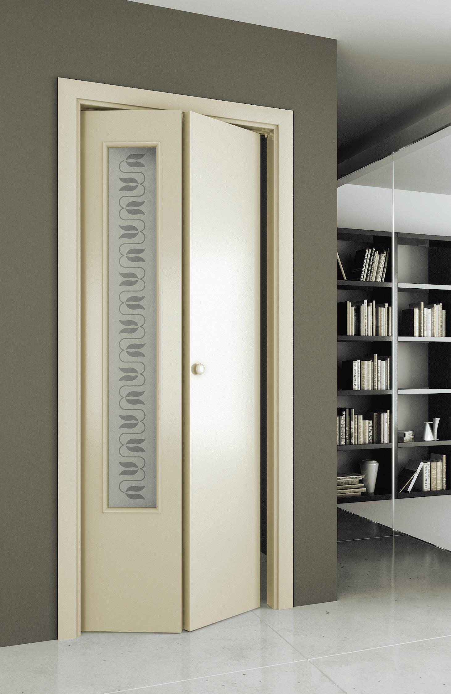 Вариантов дизайна складных дверей из МДФ насчитывается великое множество. Синтетический материал, обладающий гладкой структурой, гибкостью и сочетаемостью с различными методиками декоративной обработки, позволяет использовать: