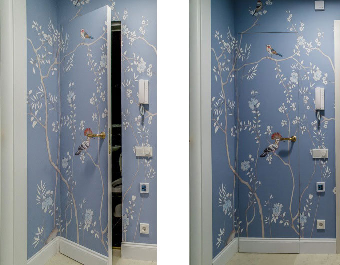 Лабиринты секретных ходов в старинных замках и особняках и ультрамодный минимализм послужили вдохновением для межкомнатных створок потайного монтажа. Настоящие мастера маскировки, гладкие полотна умело прячутся на фоне стен, внезапно возникая в момент открывания. Среди подобных конструкций особой популярностью пользуется скрытая дверь под обои, которая: