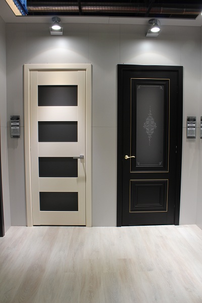 • наличие стеклянной вставки. Крупный светопрозрачный элемент в составе дверей из экошпона повышает стоимость изделия на 5-6 тыс. рублей;