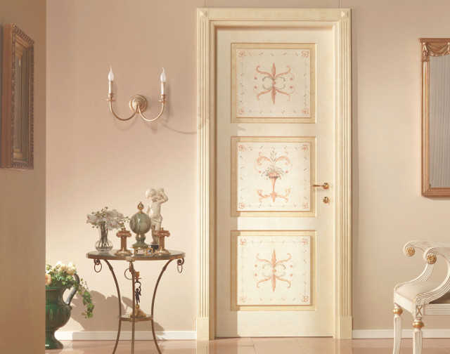 в интерьеры направления кантри. Светлая дверь Классика такого типа обладает нестандартным «деревенским» очарованием, подчёркнутым с помощью простых грубоватых форм, тёмной патины и браширования, отсутствия видимой отделки.