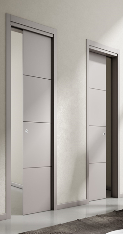 2. кассетные. В комплекте с узкой раздвижной дверью поставляется пенал, посредством которого обеспечивают её встраивание в стену. Освобождая проход, секция прячется во внутренней парковке - виднеется лишь её малая часть с ручкой. Благодаря этому вся территория, окружающая проём, остаётся незанятой и может быть использована для более удобной расстановки мебели и техники.