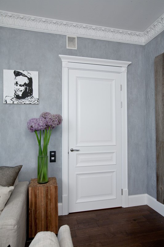 направление дизайна, которому подчинена обстановка. Производители предлагают выбрать белую дверь со склада или купить её под заказ в любом стиле от минимализма до «дворцовой» классики, и т. д.